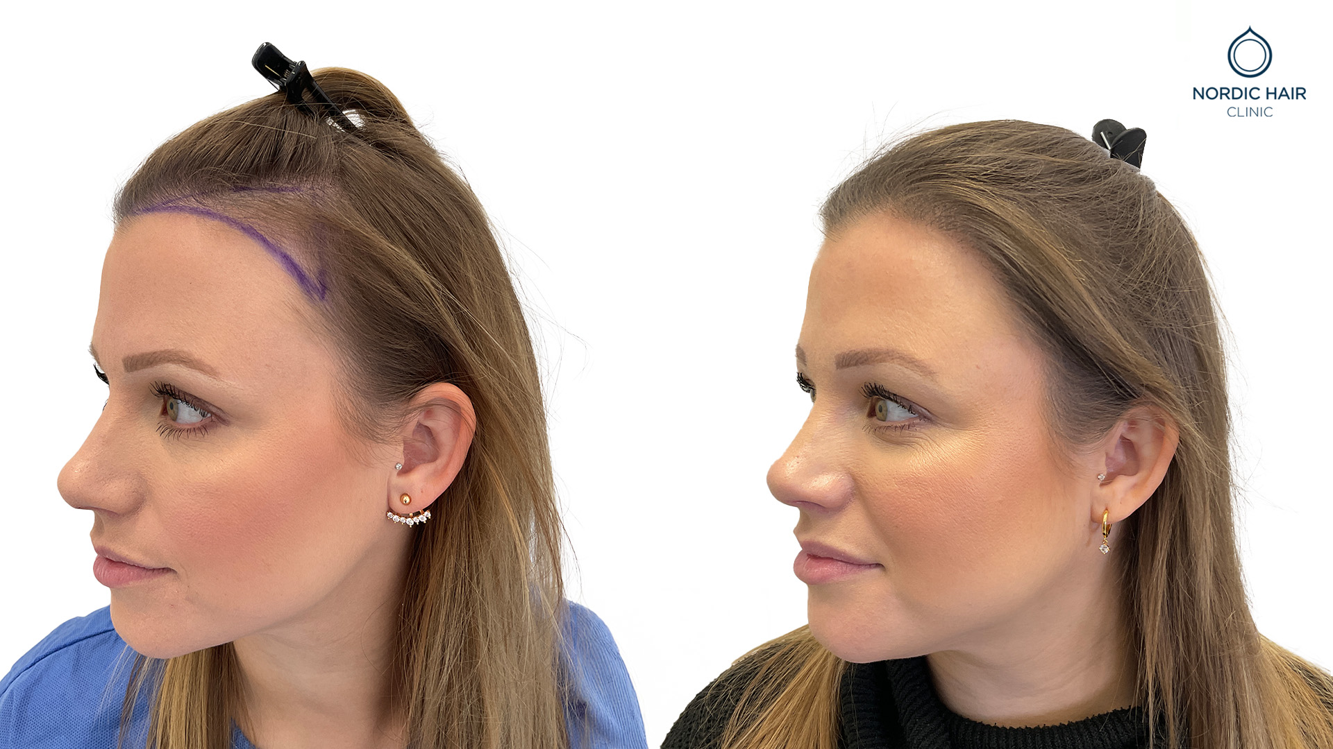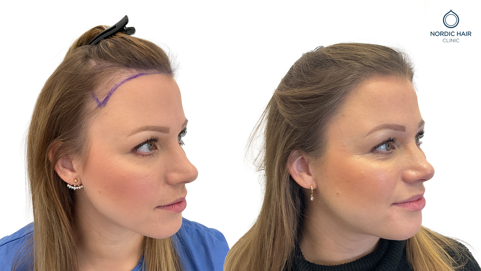Johanna kom til os til en hårtransplantation og er meget tilfreds med resultatet. Hun ville udfylde sin hårgrænse og få et fyldigere og mere naturligt look. Efter proceduren med 1500 grafts er hendes selvtillid steget, og hun føler sig mere tryg ved sit udseende.